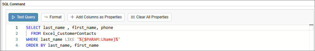 Once you've finished writing your SQL statement, the Format button will apply syntax formatting to your SQL statement automatically, changing this: