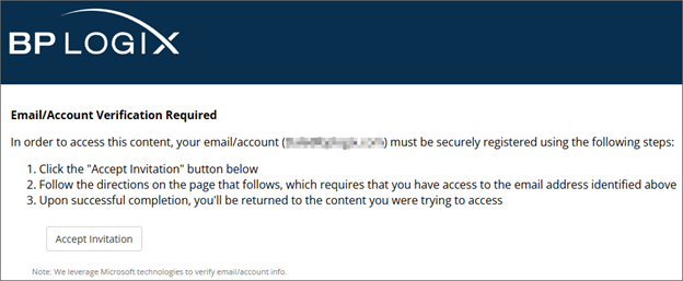 This invitation screen is the first step in creating the authentication method you’ll use to access your organization’s M365 documents and applications. Begin the authentication process by clicking the Accept Invitation button. An identity protection screen will be displayed.