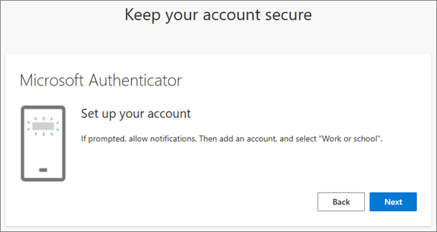 Assuming that you’ve installed the Microsoft Authenticator app on your mobile device, you can click the Next button to continue.