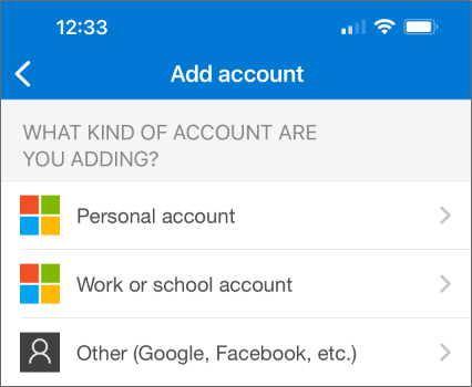 You’ll need to select the Work or school account option. When you do, additional options will appear at the bottom of the screen to display the methods available to create the account.