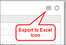If the “Displayed in Grid” option is selected, then the Knowledge View results will display in the browser, along with an icon button giving the user the option to export the results to an Excel file.